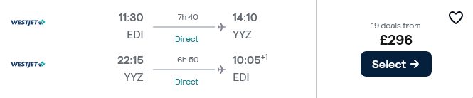 843 £/person (flight and accommodation The Novotel Toronto Centre )