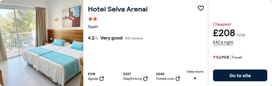218 £/person (flight and accommodation Nura Santa Ponsa & Spa )