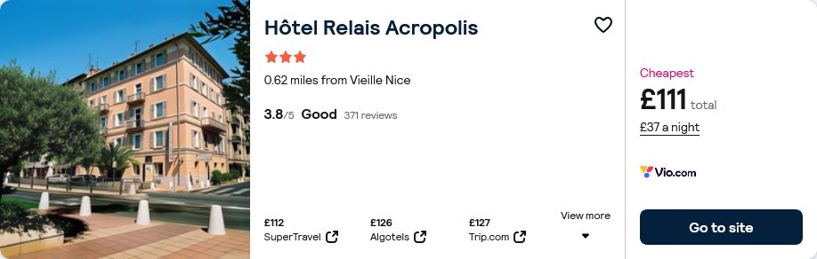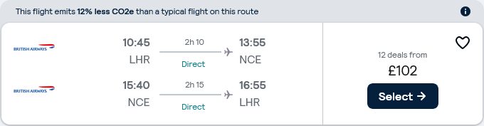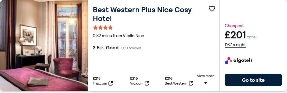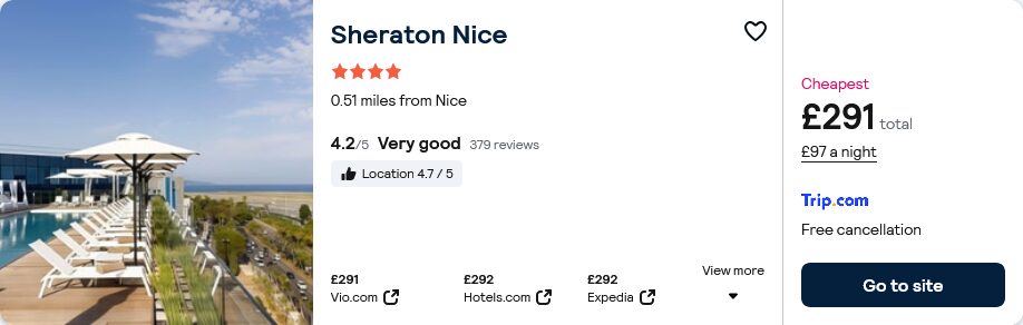 203 £/person (flight and accommodation Best Western Plus Nice Cosy Hotel )