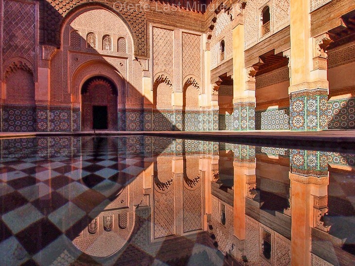 Constructed in 1565 by Saadians, Mederssa (Madrassa - the Islamic Learning School) in Ben Youssef is the largest Theological College in Morocco.The guarantees of the rooms (with student cells that once housed 900 students) are grouped around small inner courtyards in typical Islamic architectural style, but the main internal court is the true culminating point here.The fine zellige plates, the stalactitis ceilings, the cedar wood details and the kufic inions used as a decor inside the court make this mersce one of the most beautiful buildings in Morocco and a star attraction for Medina.