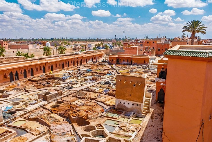 The Marrakesh Tăbăcă neighborhood is smaller than the FES, but just as atmospheric.Here is the skin, used for shoes, bags and other colored products that you will find in kiosks, paint in a multitude of shades.Come here in the morning if you want to see the tanners working.For photographers, there are wonderful views on the whole area of some of the leather workshops, although you will have to pay a tip to enter.