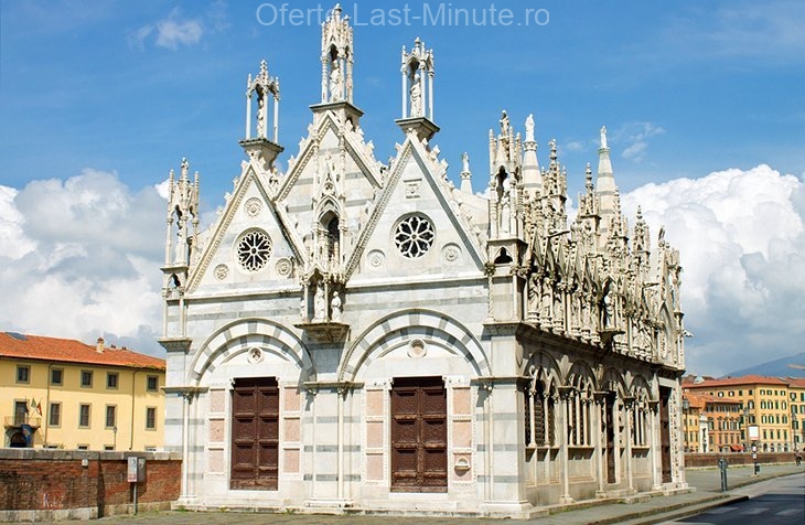 The Church of Santa Maria della Spina, on the left bank of Arno, is probably the best known of the smaller churches in Pisa and, of course, one of the most beautiful churches in Pisa.Initially, a small oratorical session right on the river, suffered serious damage to the foundation, and in 1871 was drawn by stone and was rebuilt above.The rich gothic richness owes its name in the possession of a spina (spina) in the crown of thorns of Christ, brought to the Holy Country.The western front has two distinct doors and three gables, each with a small rose window.In the southern part of the church, a series of arches surround the doors and windows and, above, a niche with figures of Christ and the apostles.The building is crowned by tabernacles containing statues, some of them now being replaced with children and the originals displayed in the National Museum.The original Madonna del Latte version is also in the museum;The one inside the church is a reply.