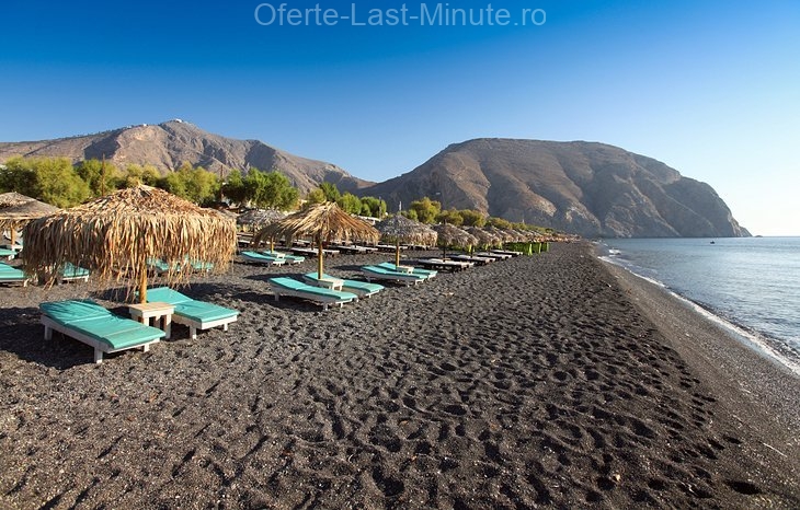 The most popular and popular beach in Santorini is on the southeast coast, between the villages Perissa and Perivolos.A long stretch of six kilometers of fine and black volcanic sand, is supported by Tamaris trees and overlooked by a series of taverns and cafes with seafood.There are loungers and shadows for rent, plus facilities for water sports.It is about 12 kilometers of threads.