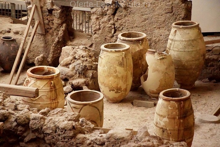 Near the village of Akrotíri Modern, 12 kilometers southwest of Firá, the old minoic settlement in Akrotíri was buried under the lava following the 7th century volcanic explosion BC.At the Akrotiri archaeological site, visitors can go through the residues of the city to see the remains of clay buildings in this city.It is so well preserved that it is often compared to pumps.The site has remnants of buildings on several levels, ceramics and drainage systems, which shows that Santorini was a flourishing and prosperous island before eruption and probably lived from maritime and commercial transport.who decorated his houses.The site of the ruins Akrotiri reopened to the public in 2012, after a few years of closing