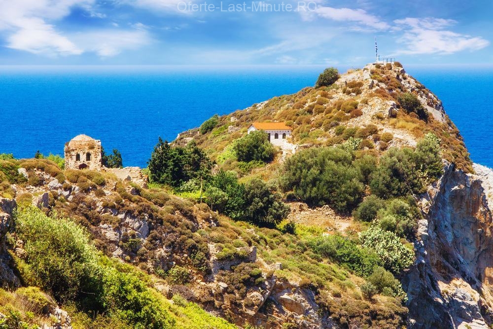 In the fourteenth century, in front of the constant pirate raids, the capital Skiathos was moved to this promontory now abandoned from the northern peak of the island. N n nsta there is no easy way to reach this point, because you will need a 4 × 4 for the ground track through a natural reserve or to catch a bar,promontory. There is a hike to the castle, which is being restored.mosque and three churches on the site;The largest church, Agios Nikolaos, is open and is worth a look, while the mosque is closed to visitors.